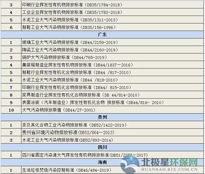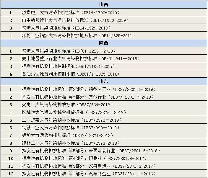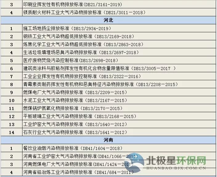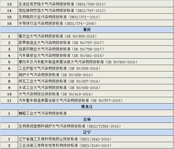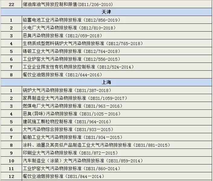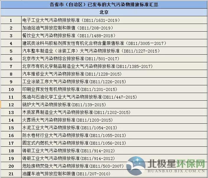 目前,各省市已经公开发布了大气污染物排放标准,内容如下: